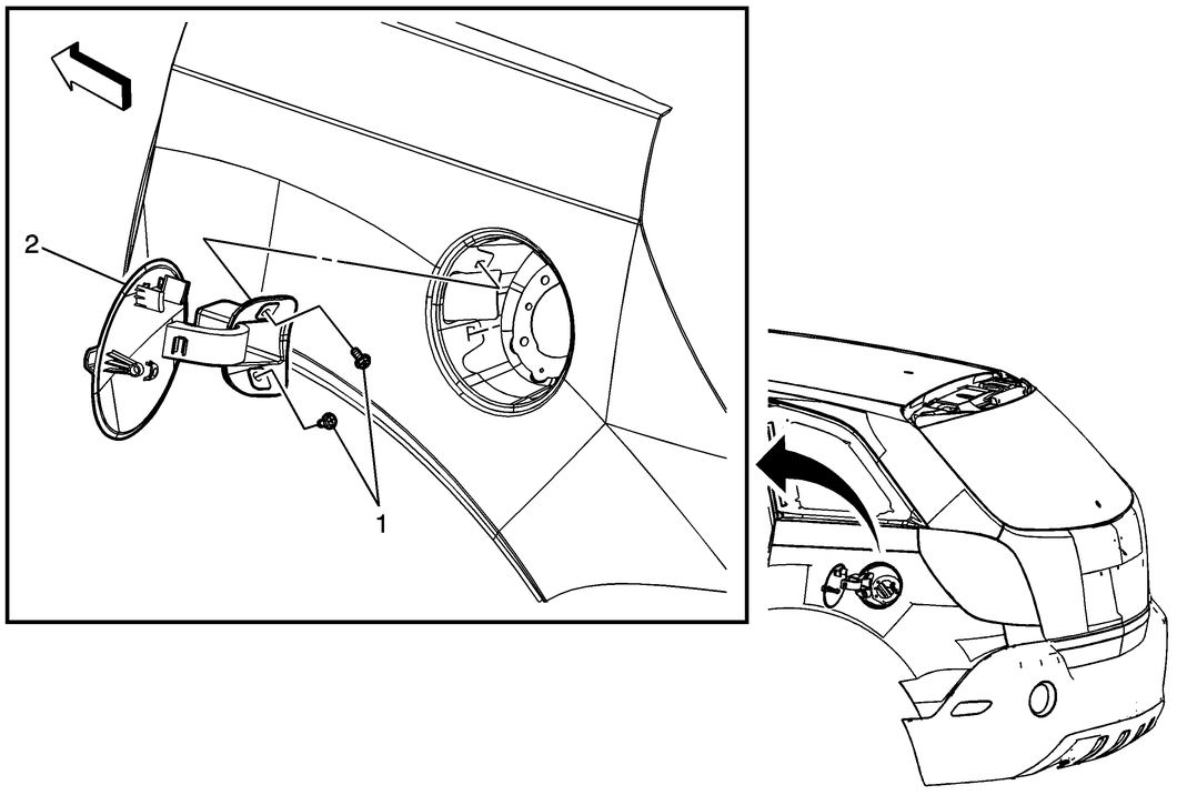 | Reverse procedure to install. Torque fuel door bolts to 22 inch lbs. |