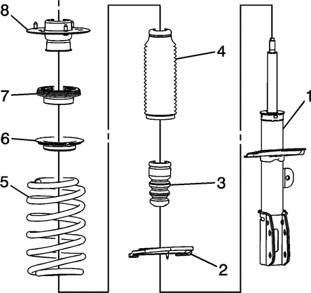 | Before removing any of front strut assembly components, note alignment and orientation of all components to aid in installation. |