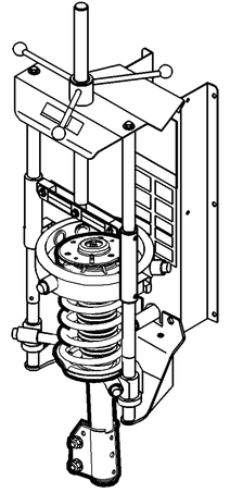 | Ensure front suspension strut assembly is vertical in spring compressor. |